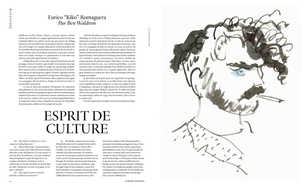 - Interview avec le longboardeur portugais Eurico « Kiko” Romaguera, aussi épris de culture surf dans les vagues qu’en organisant le festival Gliding Barnacles.