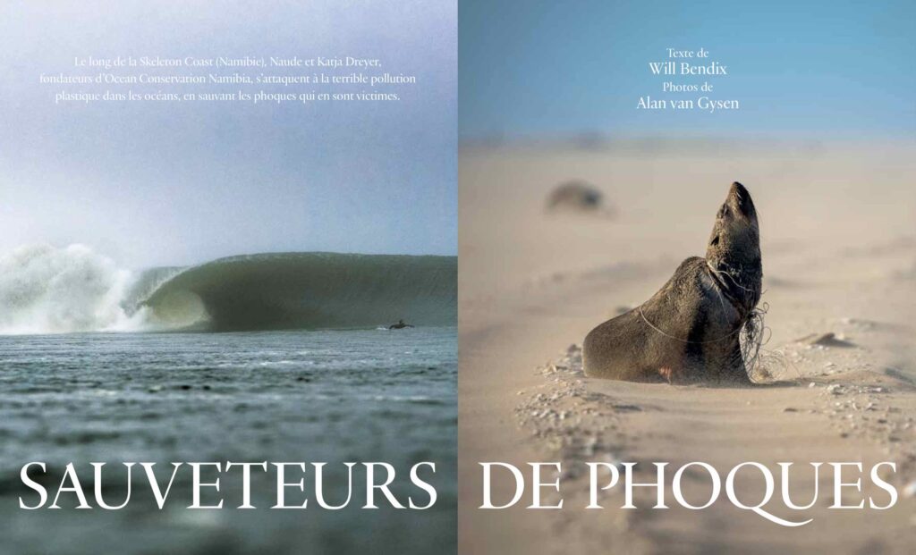 - La gauche de Skeleton en Namibie fait les séquences régulières de vidéos de surf. Cette fois pas de surf à Skeleton mais le sauvetage, grâce à une équipe locale, de tous ces phoques qui meurent étouffés sur la plage à cause de la pollution plastique. Reportage au cœur de l’action.