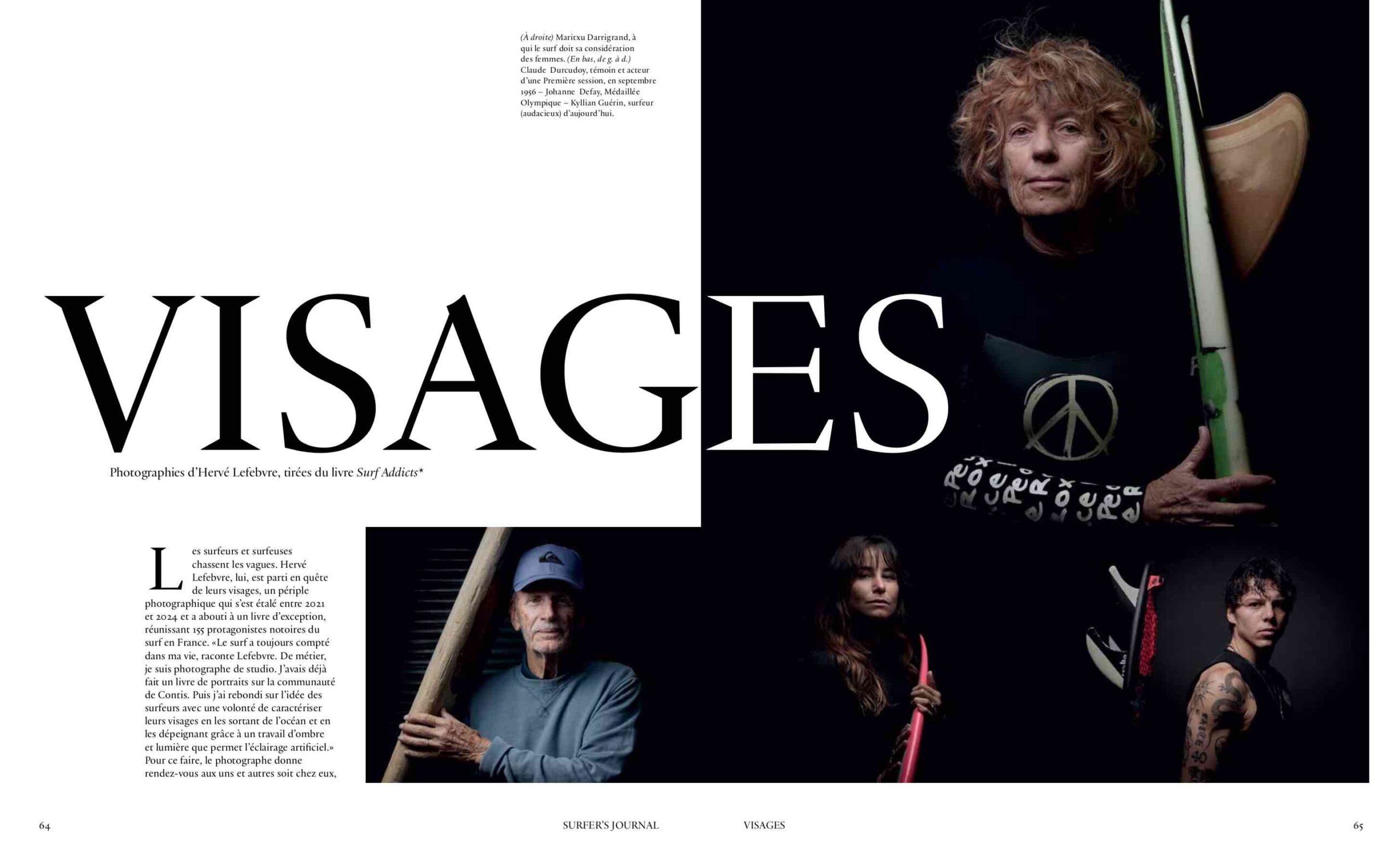 - Saisir les visages de surfeur.se.s pour y révéler toutes les vagues qui en font les traits de personnages marquant du surf français, telle a été la mission que s’est donné le photographe Hervé Lefebvre pendant trois ans. Au final un superbe livre, Surf Addicts, aussi monumental qu’expressif du surf et de la nature humaine. Surfer’s Journal a plongé dedans et en a extrait quelques bonnes têtes.